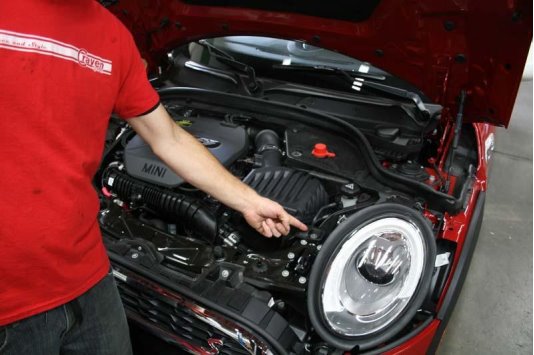 Congrats! Your installation is complete! Make one last check of the engine compartment to make sure all connections have been made and that there are no stray tools left behind. Close the hood, start up your MINI and send it.