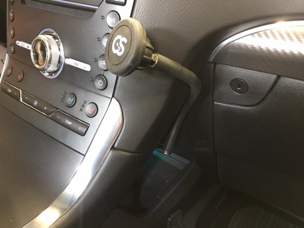 - Bend the FlexArm to wrap closely around the center console and position the magnet mount just in front of the center console surface. Apply one of the included adhesive metal plates to the backside of your phone or phone case. If your phone case is not too thick, you may have good results applying it the inside of the case.