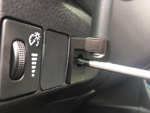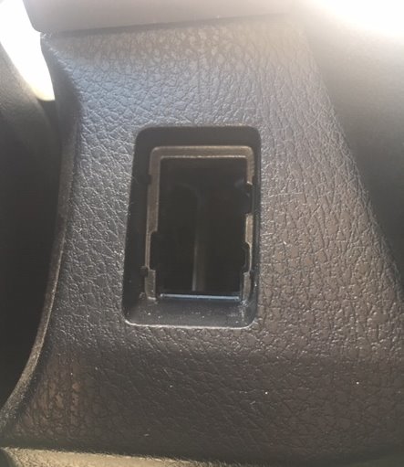 - Behind the Spare Switch Cover there should be a hole that opens up to the expanse behind the dashboard. If there is a shallow pocket with a centrally located Phillips screw, proceed to step 5 (Alternate Method).