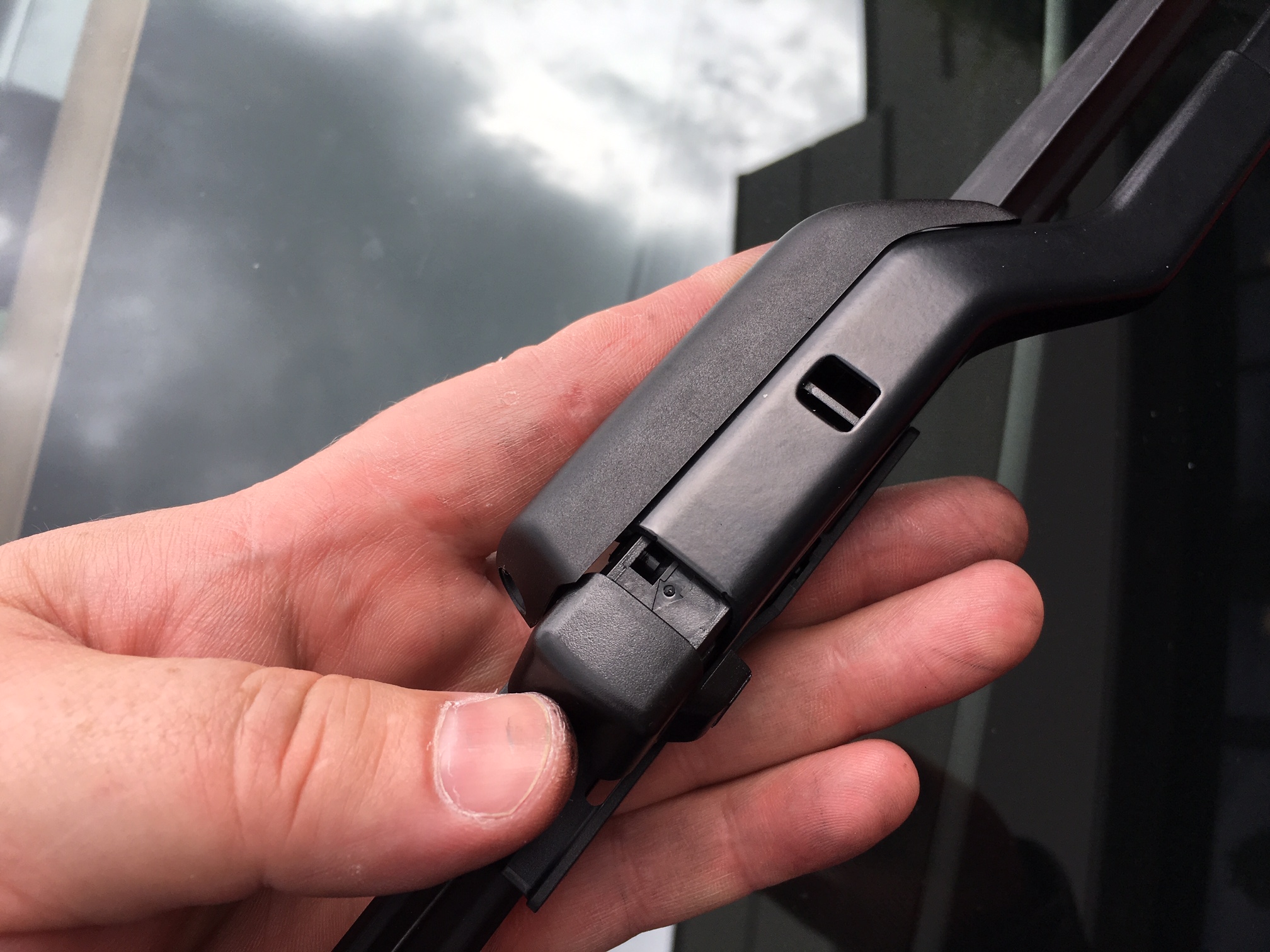 - Take one of the PIAA wiper blades and place it infront of the wiper arm attachment point. Slide the PIAA wiper back into the fitting until the clip engages the square hole on the end of the wiper arm. You should hear an audible 'click' confirming the two components have locked together.