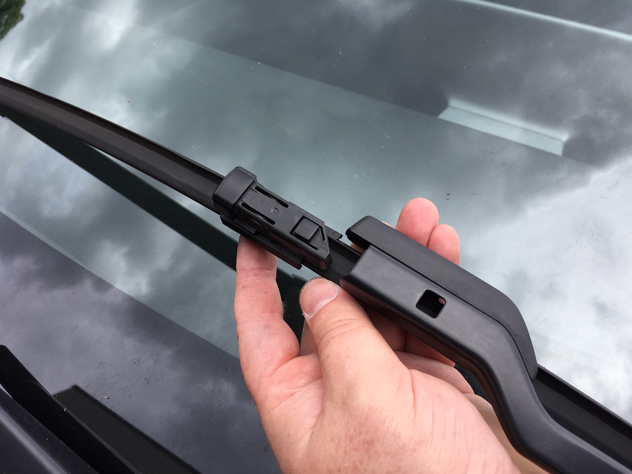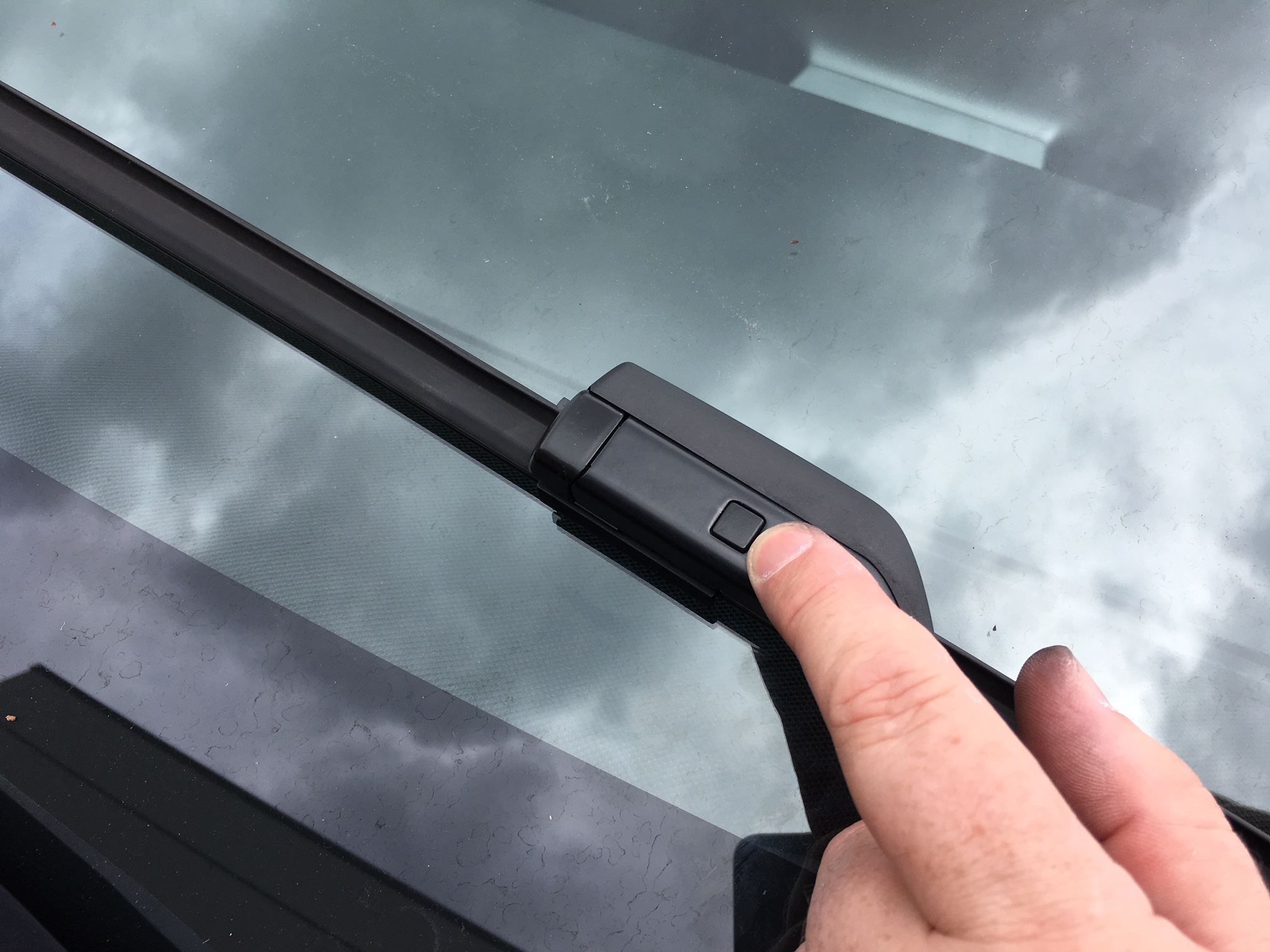 - For removal of the 'Small Push Button Style' attachment point on your worn wiper blades, push down on the small square button and pull the worn wiper assembly away and off the wiper arm.