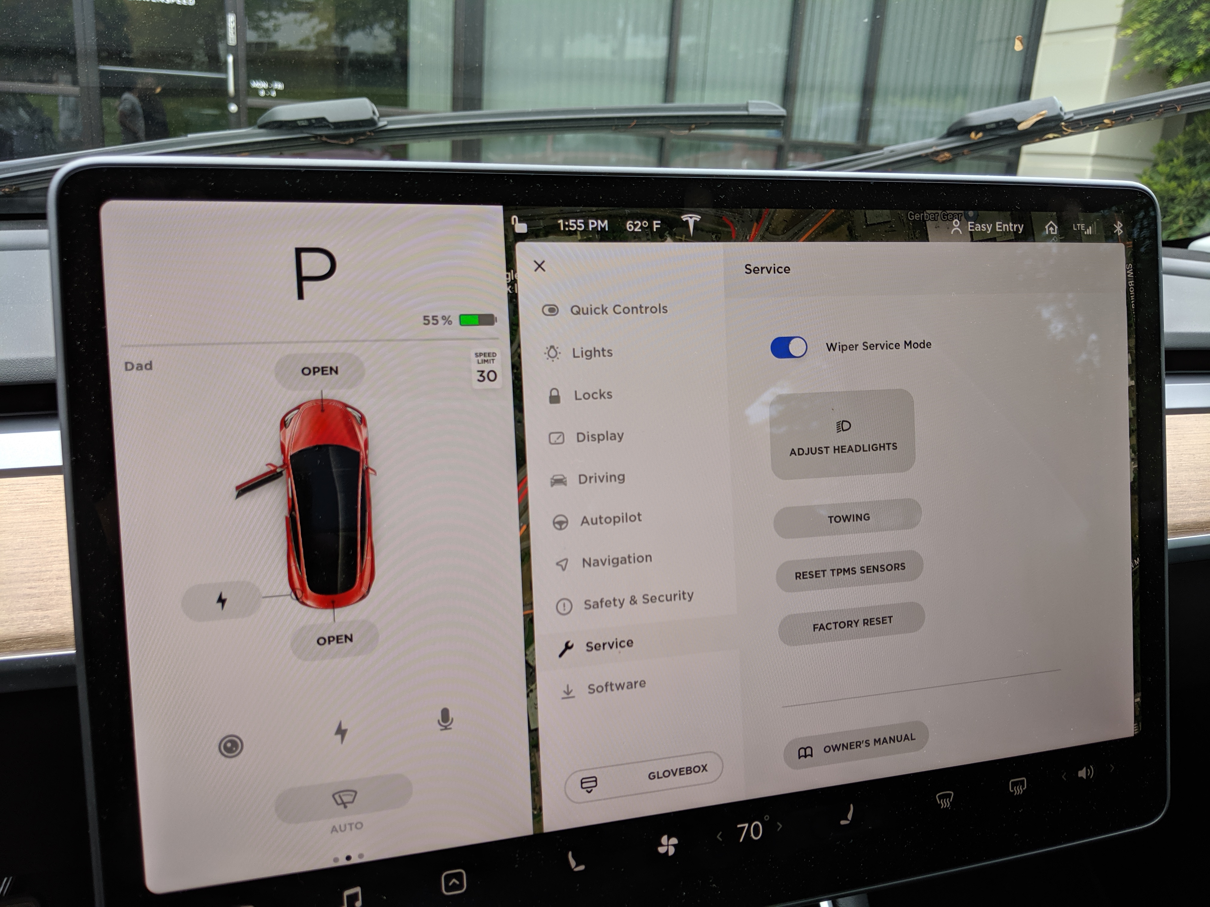 - Park your vehicle in a well-lighted and clean area. Your Tesla Model 3 is equipped with a handy feature called 'Wiper Service Mode' and it can be accessed through the main screen at the 'Service' tab. This mode brings your wiper arms up into a more accessible position so you can perform the wiper blade replacement easier.