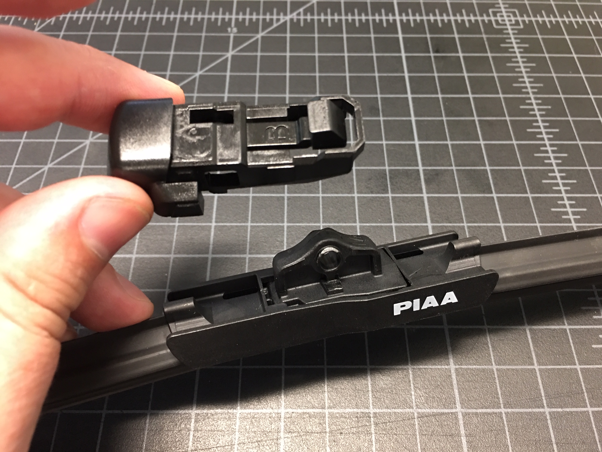 - In order to use these adapters you will need to remove the clip that comes preinstalled on the PIAA wiper blades. Utilize a small, flat-bladed screwdriver to pry up on side and pivot the fitting off the wiper blade.