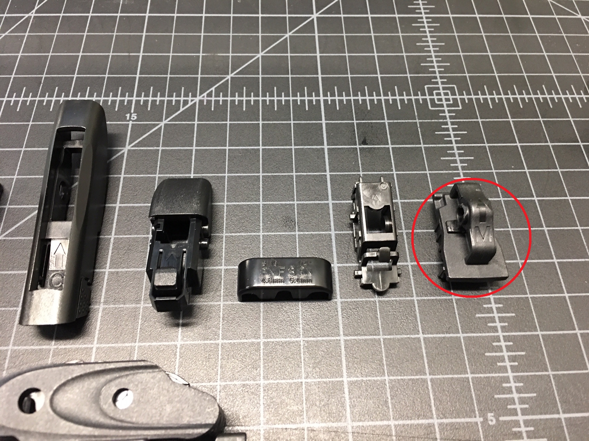 - Once you have that base adapter removed, snap in the adapter marked "M". There is a lip that the adapter fits in first, then pivot and snap the adapter into place.