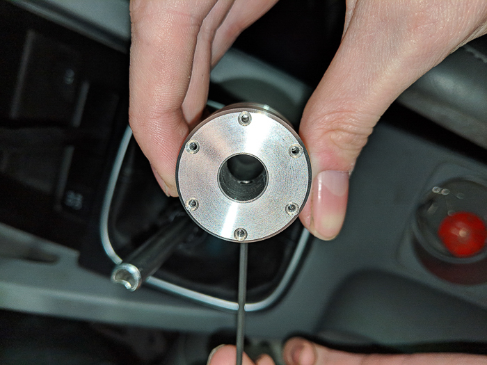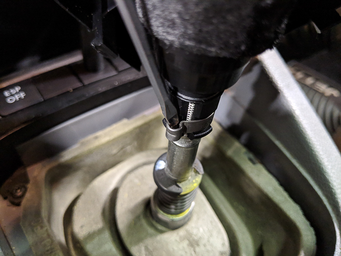 - Next we need to loosen the steel ring that clamps the shift knob onto the shifter.